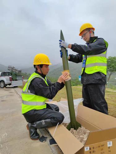 深汕合作区增雨作业人员检查设备。通讯员供图