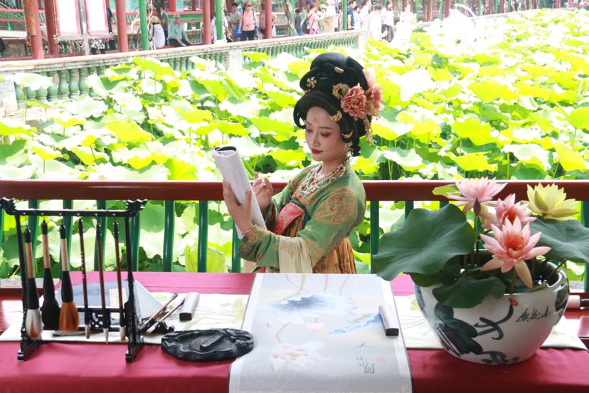 记者在荷花盛境看到,古韵荷塘汉舞快闪活动让不少游客感到惊喜。围绕着荷花盛境,园区内还布置了天空之伞、莲韵荷灯、荷花秋千、赏荷茶座等各具特色的古风赏荷摄影打卡点,完美融入到碧水红荷、园林古建的天然实景当中,现场吸引了众多游客、摄影爱好者拍照打卡。