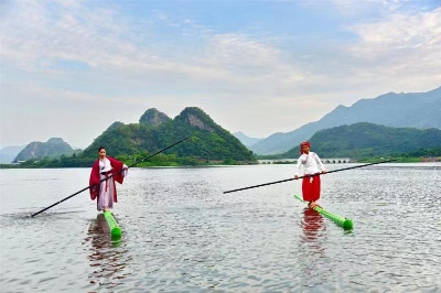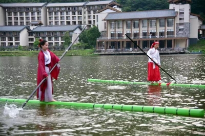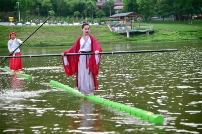 表演的时间为1至4日,在天鹅湖桃花桥与沿湖边栈道表演,表演场次一天4场,上午下午各2场。1日当天,4名演员来到湖边,以竹为船,在竹子上表演着一苇渡江、竹上双人杂技、浪里白条、水上飞舟等绝技,整个表演活动集民间绝技、水上运动、杂技为一体。