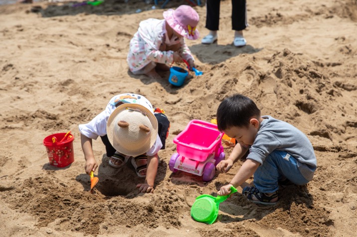 小朋友们在海边挖沙,沙滩上全是孩童们的嬉笑声;一些情侣则手牵手,踏浪踩沙,在南沙感受着别样的浪漫。