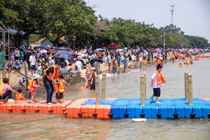五一黄金周,位于广州最南边的滨海新城南沙迎来大批珠三角游客到海边踏浪踩沙观海,滨海客流高峰杀到。
