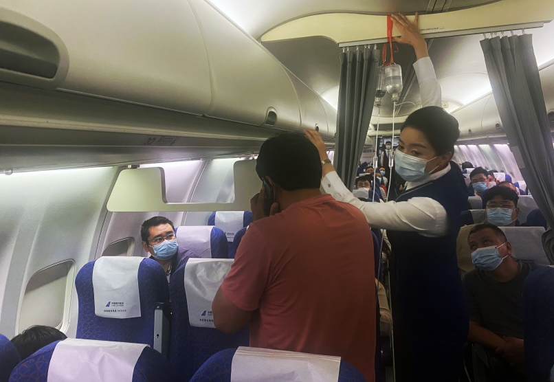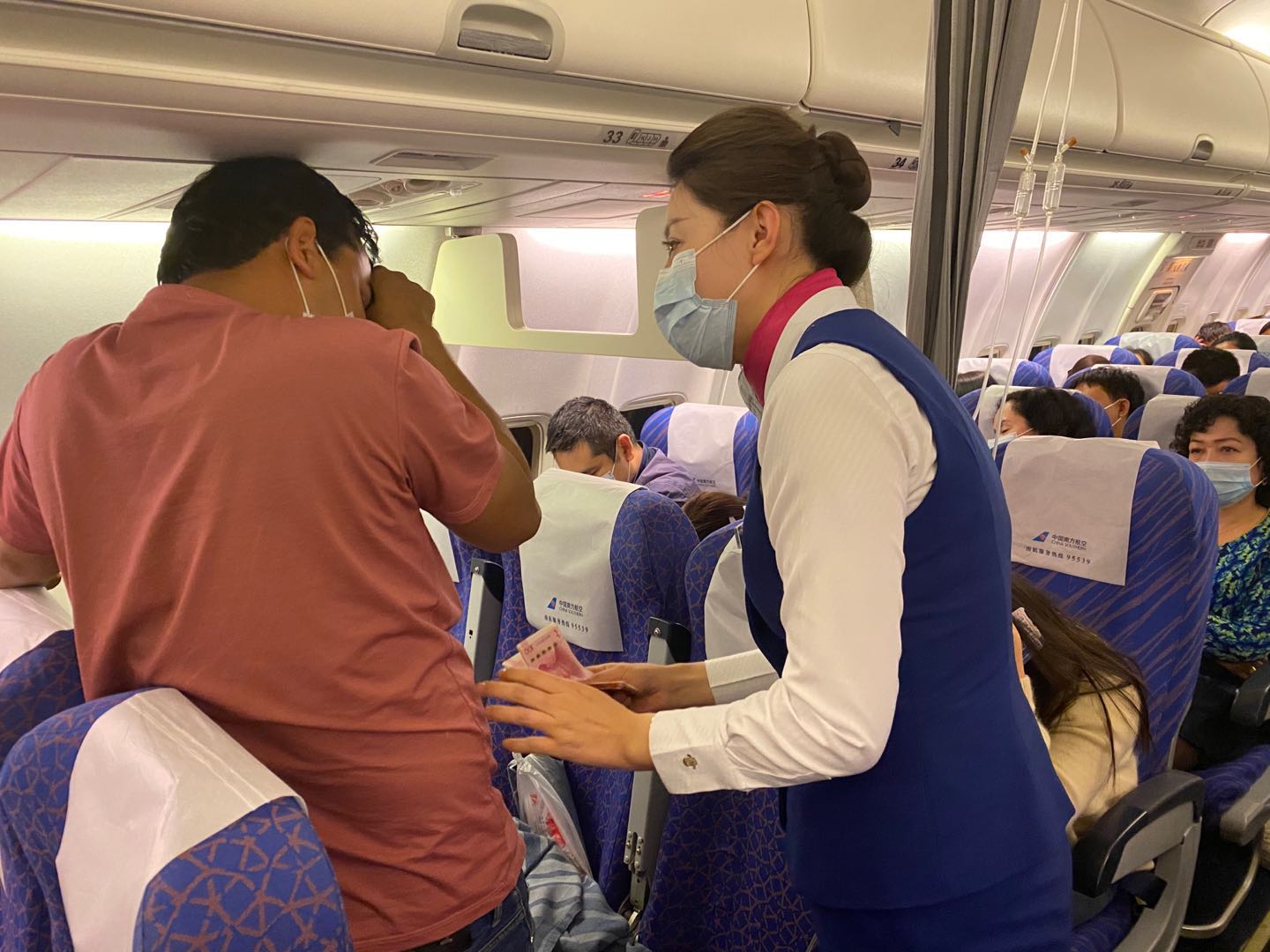 在客舱中,接到保障通知后,机组立即分工协作。23:49,飞机滑回停机位,乘务组协调旅客预留出了宽敞的空间,准备好了冰块等物品;23:54,负责此次航班保障任务的乘务长赵燕再次打开舱门,小旅客和家属在医护人员的陪同下登机;00:00,航班重新关门推出,00:09,航班顺利起飞!