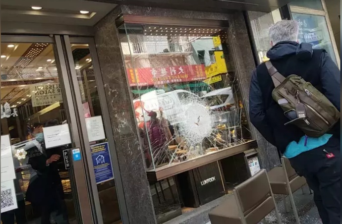 当地时间1日上午11时,在旧金山华盛顿街六福珠宝店门前,三名嫌犯在光天化日之下公然砸破该店的玻璃,以抢走珠宝。当时街上还有不少行人,匪徒得手后便逃走。现场视频被商户拍下之后,随即在社交媒体上引发热议。