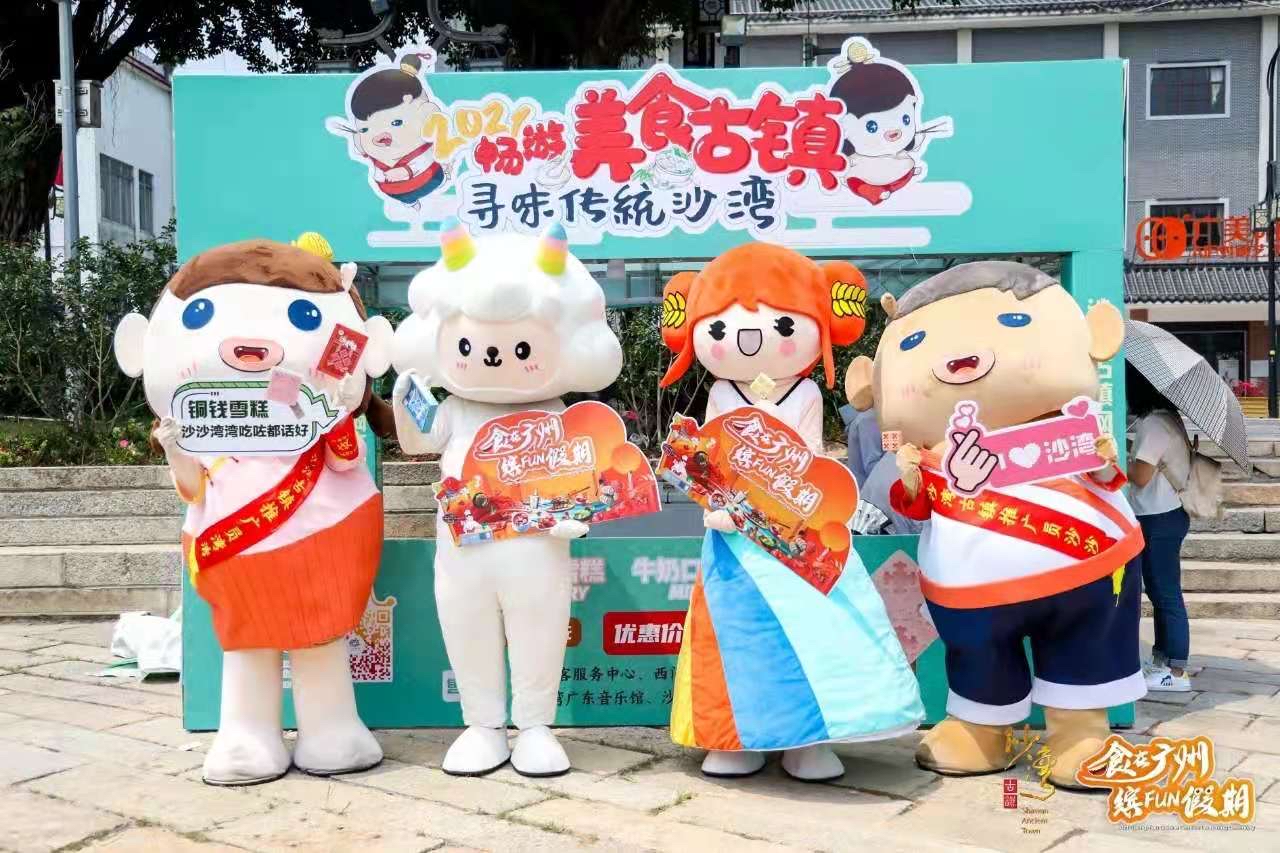 4月23日,沙湾古镇IP形象在留耕堂内正式发布。结合沙湾传统民俗“鳌鱼”、非遗文化“沙湾广东音乐”和耕读文化等特色,创作出沙湾古镇独有的,可爱的IP形象。他们叫沙沙、湾湾,从四月开始的“2021沙湾古镇辛丑年第十届传统开笔礼活动”就开始在景区内与游客互动了,这次五一假期美食活动他们也担任美食推广大使,共同为沙湾的传统美食代言。美食护照、宣传海报、景区内布置等均可看见沙沙、湾湾的身影。