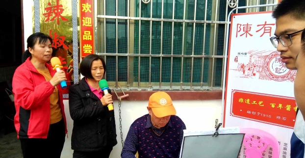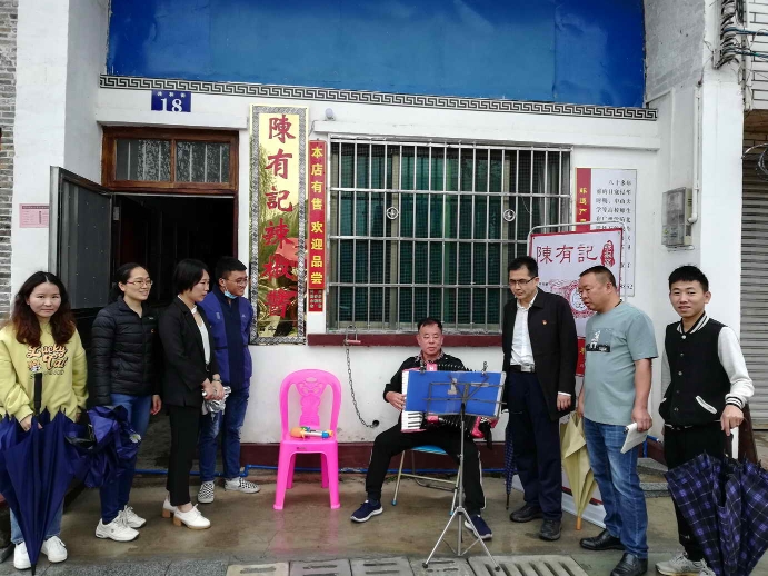 活动中,学生来到华南研学基地(坪石)坪石老街,听导师讲述当年华南高校救亡图存、读书抗日的故事;接着走进小剧院、定友图书馆,感悟时代变迁;随后来到陈有记辣椒酱展馆,聆听韶关市第八批市级非物质文化遗产代表性项目——陈有记辣椒酱制作技艺的传承人带来的抗战浪漫曲《杜鹃花》。那悠悠响起的清新流畅曲调响彻整个坪石老街。现场还邀请了游客、学生进行互动,共同表演了一段《杜鹃花》。最后,师生、游客们还到了非遗传承人陈老人的家中,亲身感受传统手工技艺的魅力,引得众多观众流连忘返。