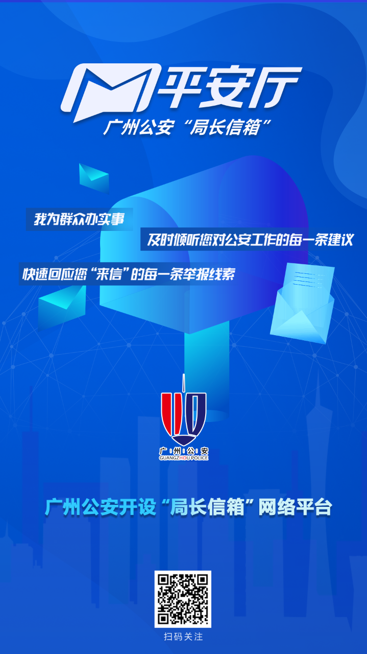 记者5日从广州市公安局获悉,根据广东省公安厅统一部署,广州市公安局“局长信箱”全面升级上线,广大群众可通过广州公安互联网门户网站及“广州公安”微博、微信平台,随时随地向公安机关反映情况、表达诉求、提出意见和建议。