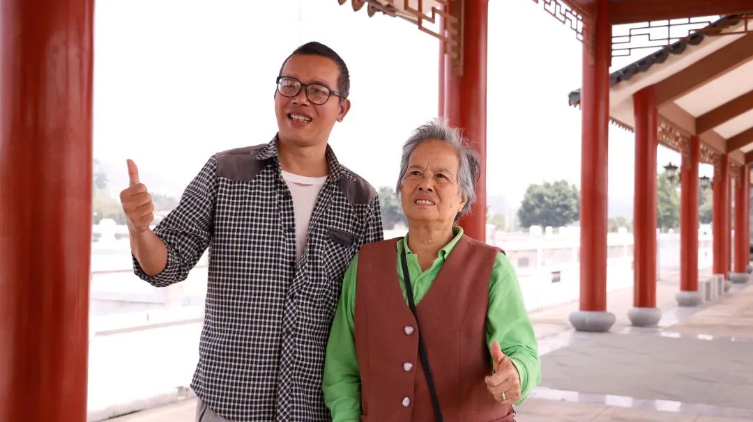 廊桥开放后,上桥驻留观赏的首位市民是居住在长洲社区上庄的本地街坊。钟叔因母亲身体不适,陪同其漫步至此。适逢廊桥开放,便第一时间扶着母亲上桥、坐在桥上的石凳上观赏美景。
