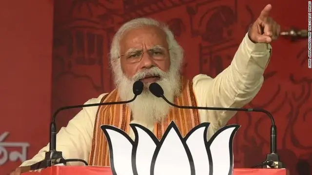 4月12日,莫迪在印度帕尔干纳邦集会上演讲。图源:CNN