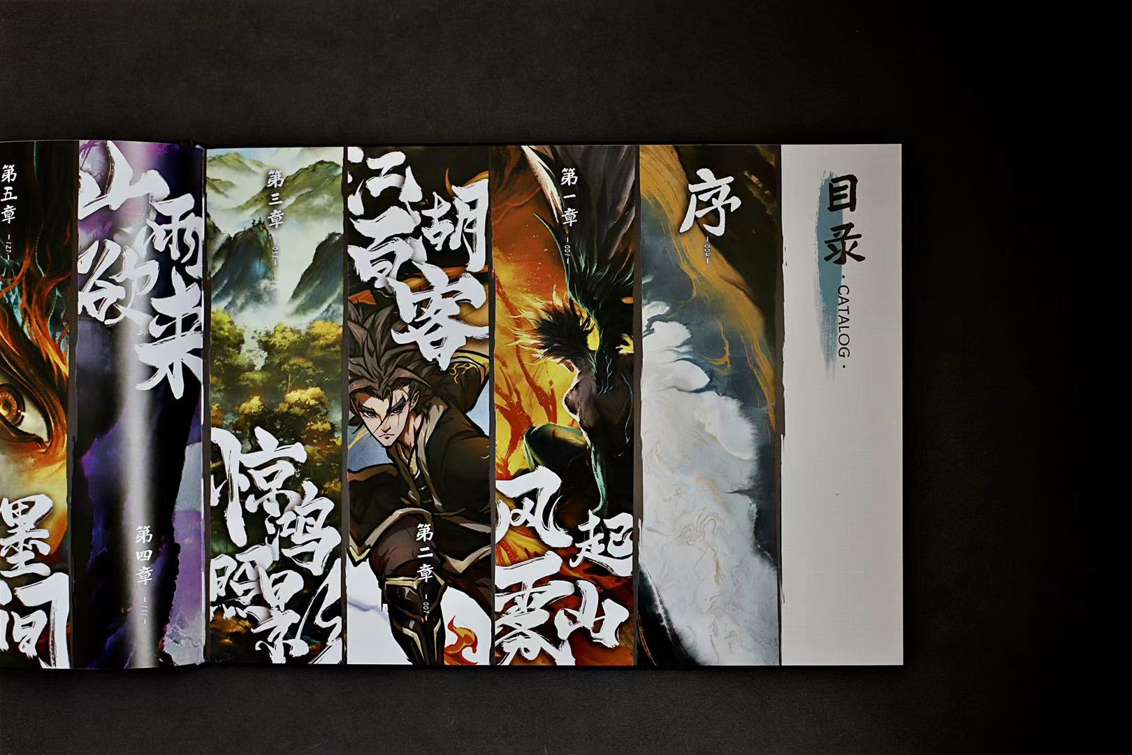 《雾山五行·艺术设定集》从动画扎实的内容出发,以八个独具国风气息的章节名称:风气雾山、江湖百客、惊鸿照影、山雨欲来、水墨之间、洪荒回忆、刀枪剑戟、渊海无畏为引子,分别从初期世界观设定、角色设定、场景设定等方面来展现动画背后的故事。