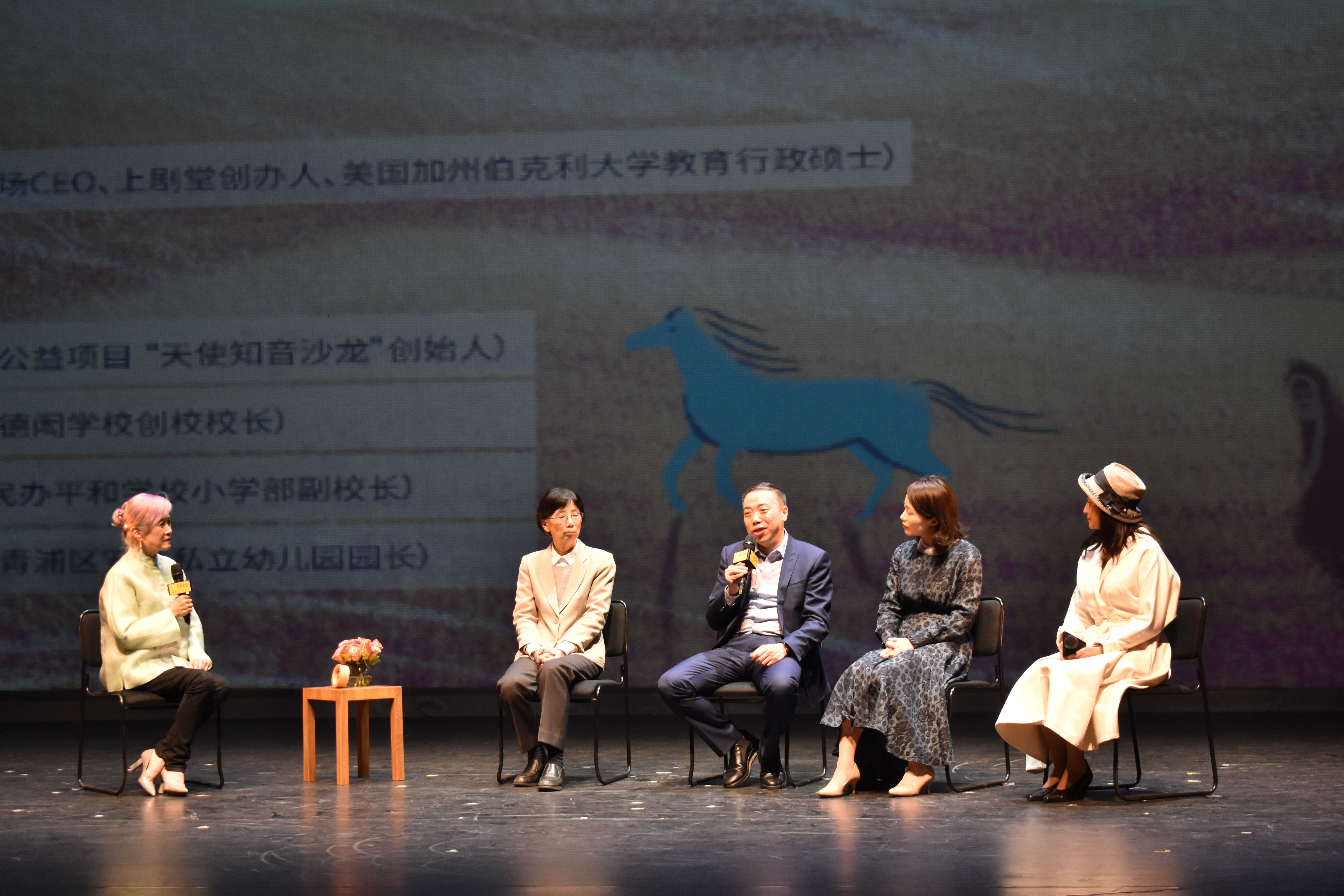 5月6日晚,自闭症儿童公益项目“天使知音沙龙”创始人曹小夏、上海德闳学校创校校长费建华、上海市民办平和学校小学部副校长蒋蓉、上海青浦区私立安乔幼儿园园长苏淳莹等4位在教育领域颇有建树的嘉宾受邀,与上剧场CEO丁乃竺一起,在上剧场与观众分享儿童教育中的家长通关法则。