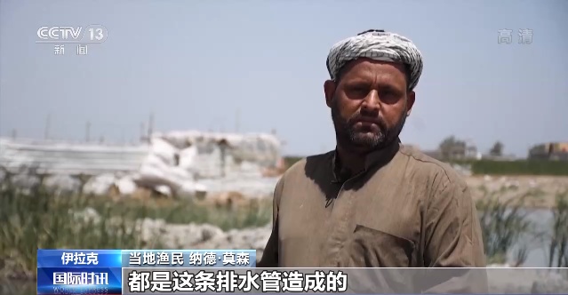 伊拉克当地渔民 纳德·莫森:我们患上的大多数疾病,都是这条排水管造成的,它毁了我们。
