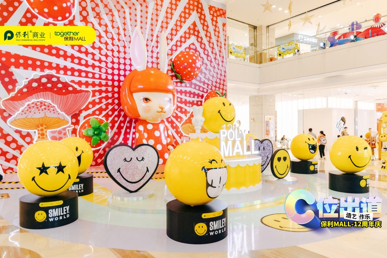 为打破艺术与生活的界限,将当代艺术元素融入商业空间,佛山保利MALL联合国际大IP“SMILEY”打造“C位出道,造艺作乐”美陈主题展,旨在微笑传播正能量,分享快乐和积极的生活态度。