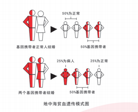 地贫是一种常染色体隐性遗传病。多数人携带有缺陷的地贫基因但不表现出临床症状,被称之为地贫基因携带者,主要包括静止型α地贫、轻型α地贫和轻型β地贫,通常在地贫筛查或家系调查时才被发现,全世界约有3.5亿地贫基因携带者。携带有缺陷的地贫基因并表现中重度贫血症状的中间型和重型地贫被称之为地贫患者,临床表现个体差异较大,贫血程度不一。