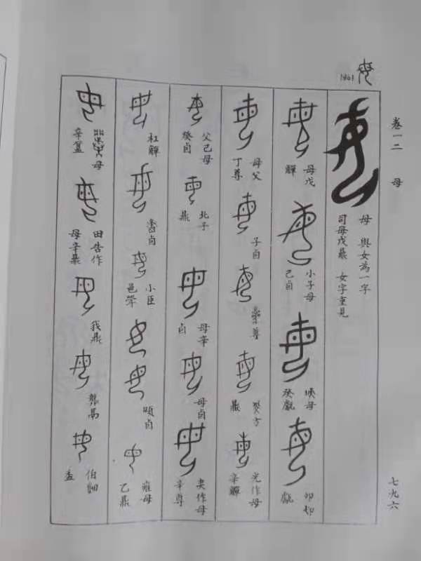 “母”字最早见于甲骨文,是一个象形字,字形像哺乳的女性,本义为母亲,又泛指女性长辈。金文的“母”字,变化不大。