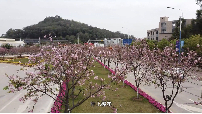 化龙农业发展总公司总经理陈镜洪表示,化龙镇委镇政府当时结合创文、创卫的工作,因为这个路口等于一个家的门口一样,“所以我们将绿化带旁边的地通过微改造种上樱花,这是化龙的一种特色。”