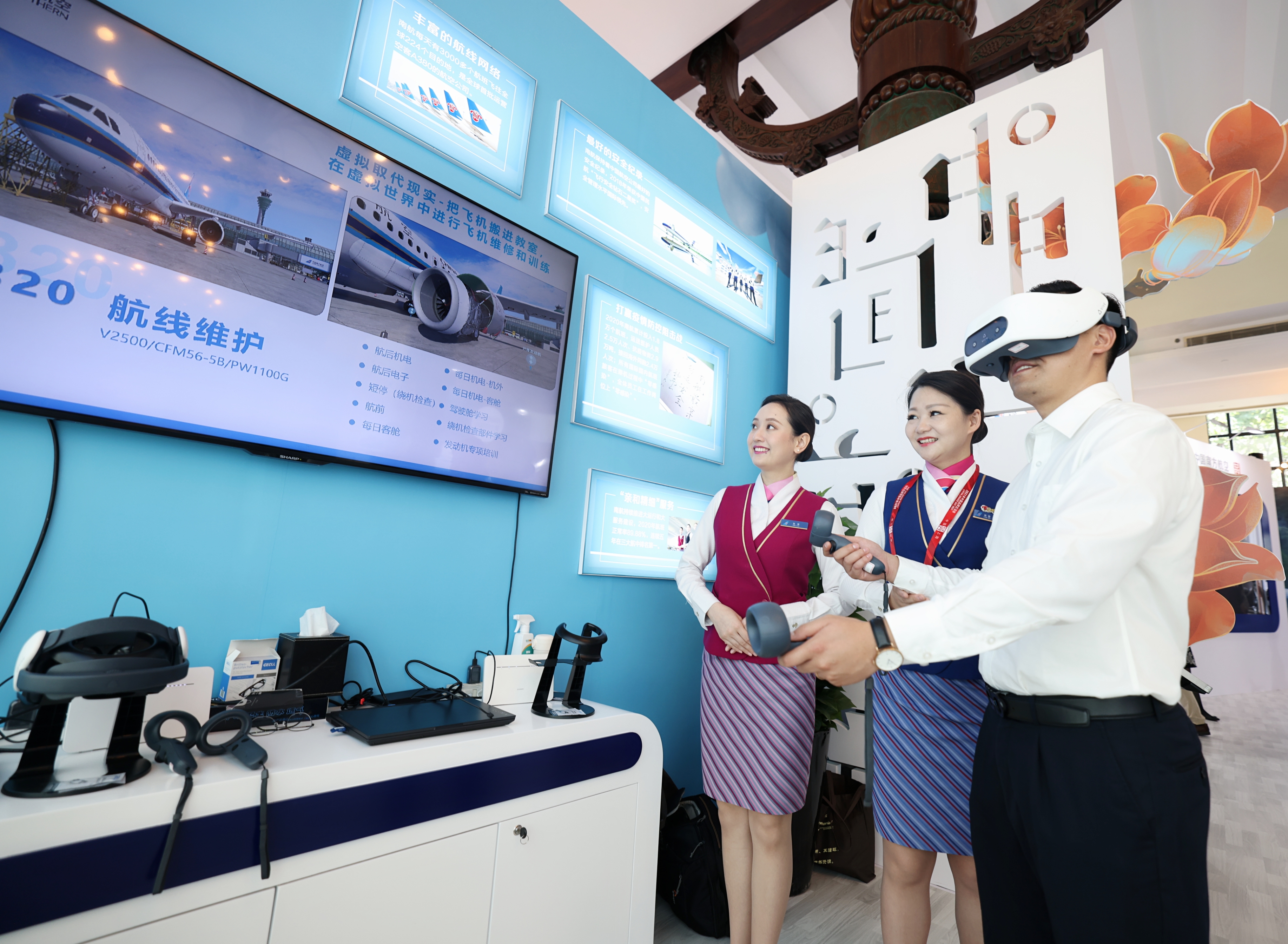 南航始终坚持创新发展,实施创新驱动战略,以数字化转型助推高质量发展,这是南航持续提升服务水平和品牌建设的一大亮点。南航展台还展示了在服务数字化方面创造的诸多民航界国内第一。如第一家引进航班运行控制系统,第一家推出电子客票,第一家推出“网上订座”服务,第一家推出电子登机牌,第一家提供人脸识别登机服务等。南航还持续打造“南航e行”,优化销售出行服务,不断提升旅客体验。“南航e行”APP累计下载激活超6800万次,位居中国民航首位。