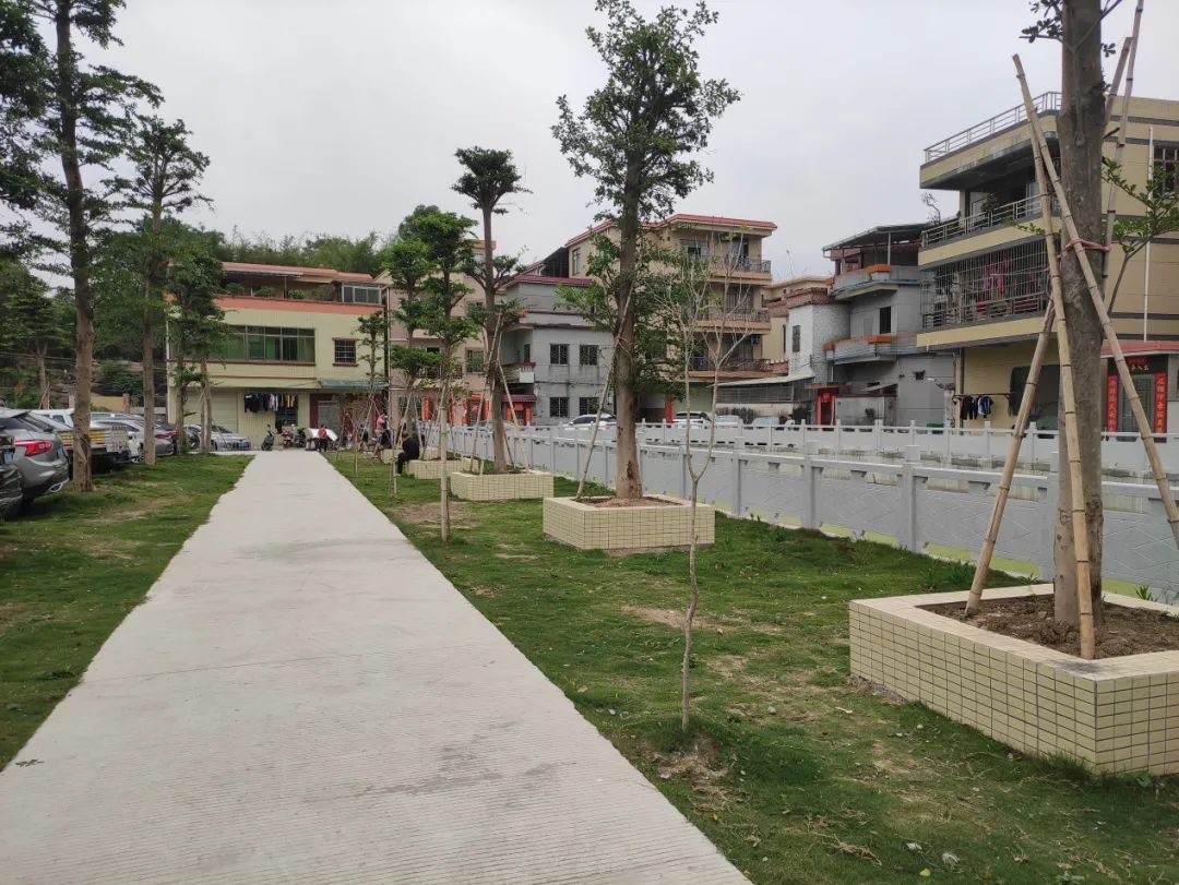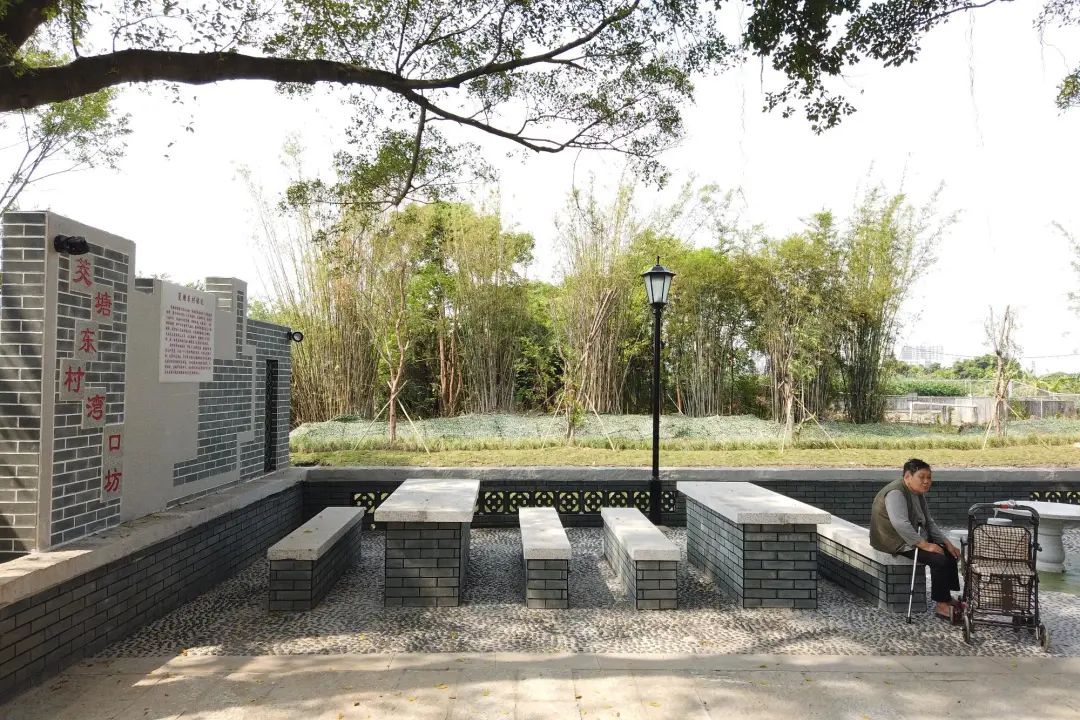 “以前这里没有规划过,比较杂乱,空地上只有几台石桌石凳,没什么休闲的空间。现在这里成了村民最爱来的地方。”茭塘东村党总支委员梁广乾所说的正是村里变化最大的湾口坊公园。