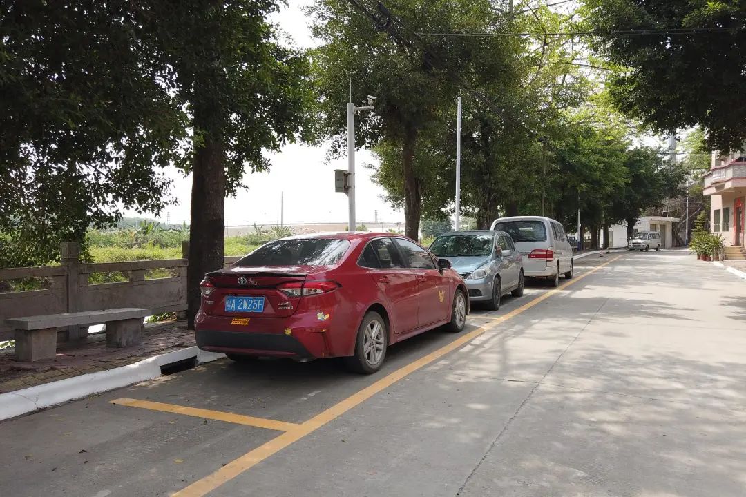 变化2:停车场进行了硬底化施工,村道上划了停车位,村民停车更有序。