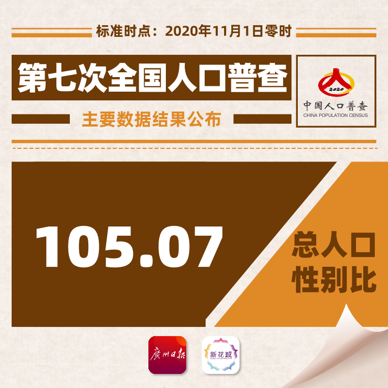 中国男性比女性多3490万人,男性人口72334万人,占51.24%;女性人口为68844万人,占48.76%。总人口性别比(以女性为100,男性对女性的比例)为105.07,与2010年基本持平,略有降低。出生人口性别比为111.3,较2010年下降6.8。我国人口的性别结构持续改善。