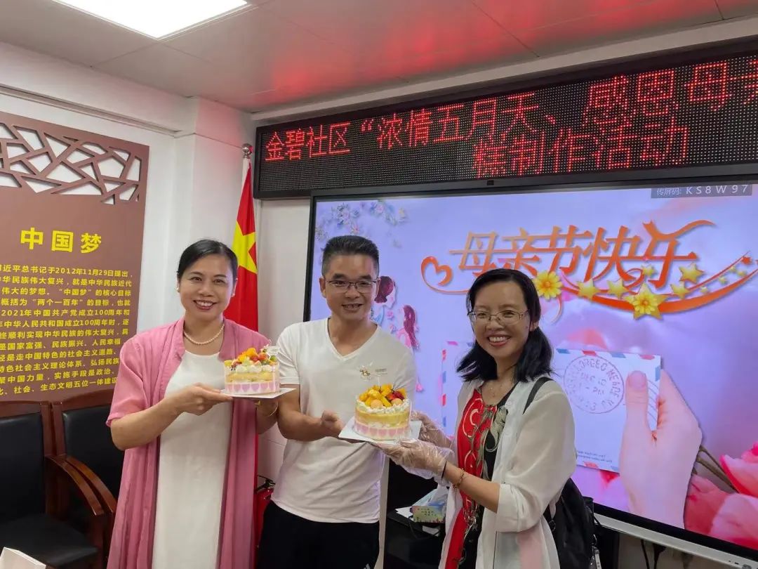 黄埔区夏港街金碧社区日前开展“浓情五月天,感恩母亲情”手工蛋糕制作活动,给社区亲子家庭提供一个表达爱意的机会,表达对母亲的爱和感恩。