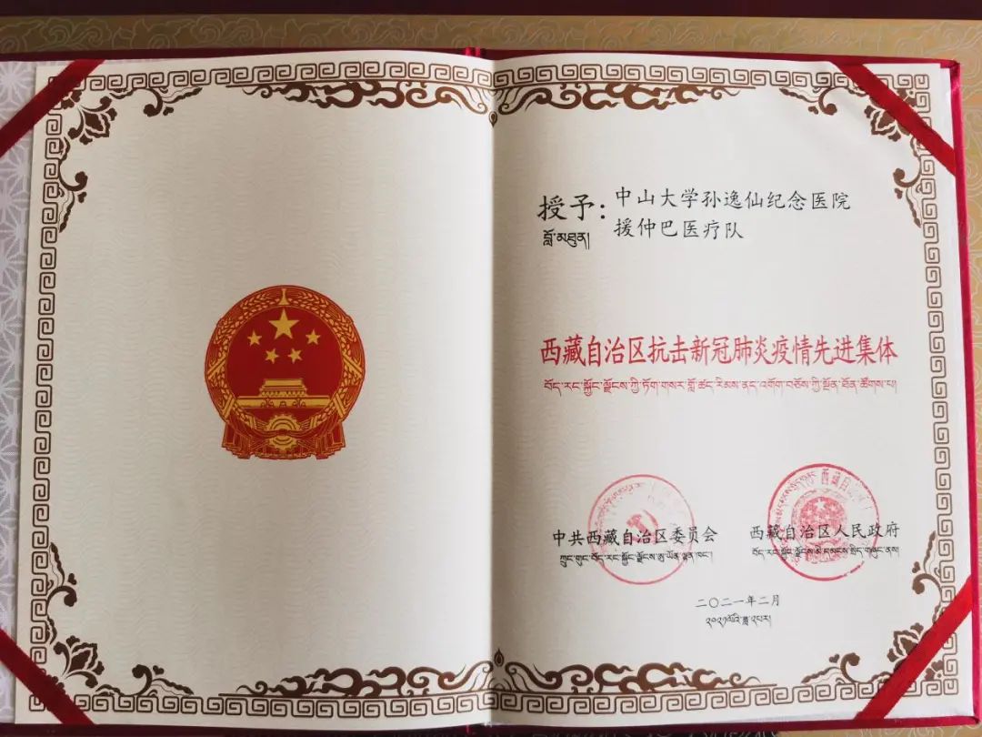 日前,李祖勇在西藏自治区人民大会堂的颁奖台上接过“西藏自治区抗击新冠肺炎疫情先进集体”的奖状和证书。他是中山大学孙逸仙纪念医院的急诊科主治医师,也是该院第四、第五批援藏医疗队的队长。接过奖状,李祖勇百感交集——作为粤藏两地浓浓深情的见证者,他深知这奖项不仅是该院在2020年新冠肺炎疫情期间在西藏自治区疫情防控工作方面贡献的嘉奖,也是医院援藏工作开展5年间,每一位援藏专家付出努力的结晶。