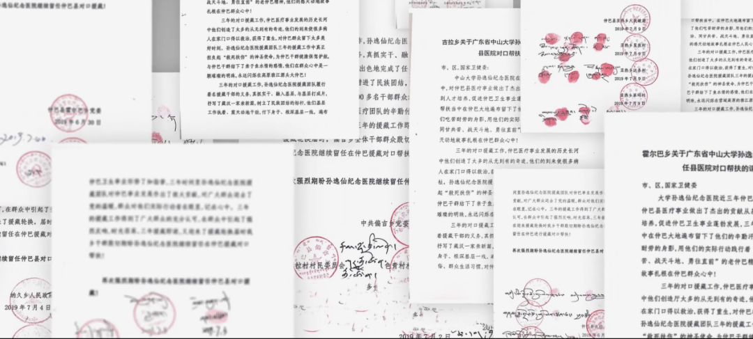 2019年,一封“沉甸甸”的感谢信送到中山大学孙逸仙纪念医院——仲巴县县长带着1镇12乡58村书写了联名信,希望该院继续对口帮扶仲巴县的医疗建设。