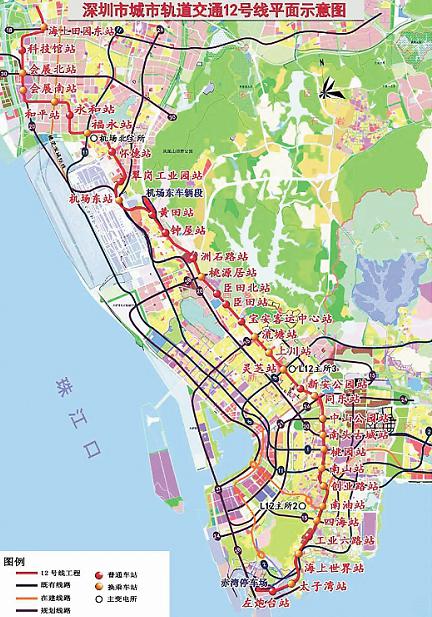 地铁 12 号线也是大湾区未来的重要动脉,线路全长约 40.6 公里,共设站 33 座,其中换乘站 18 座,预计 2022 年建成通车。