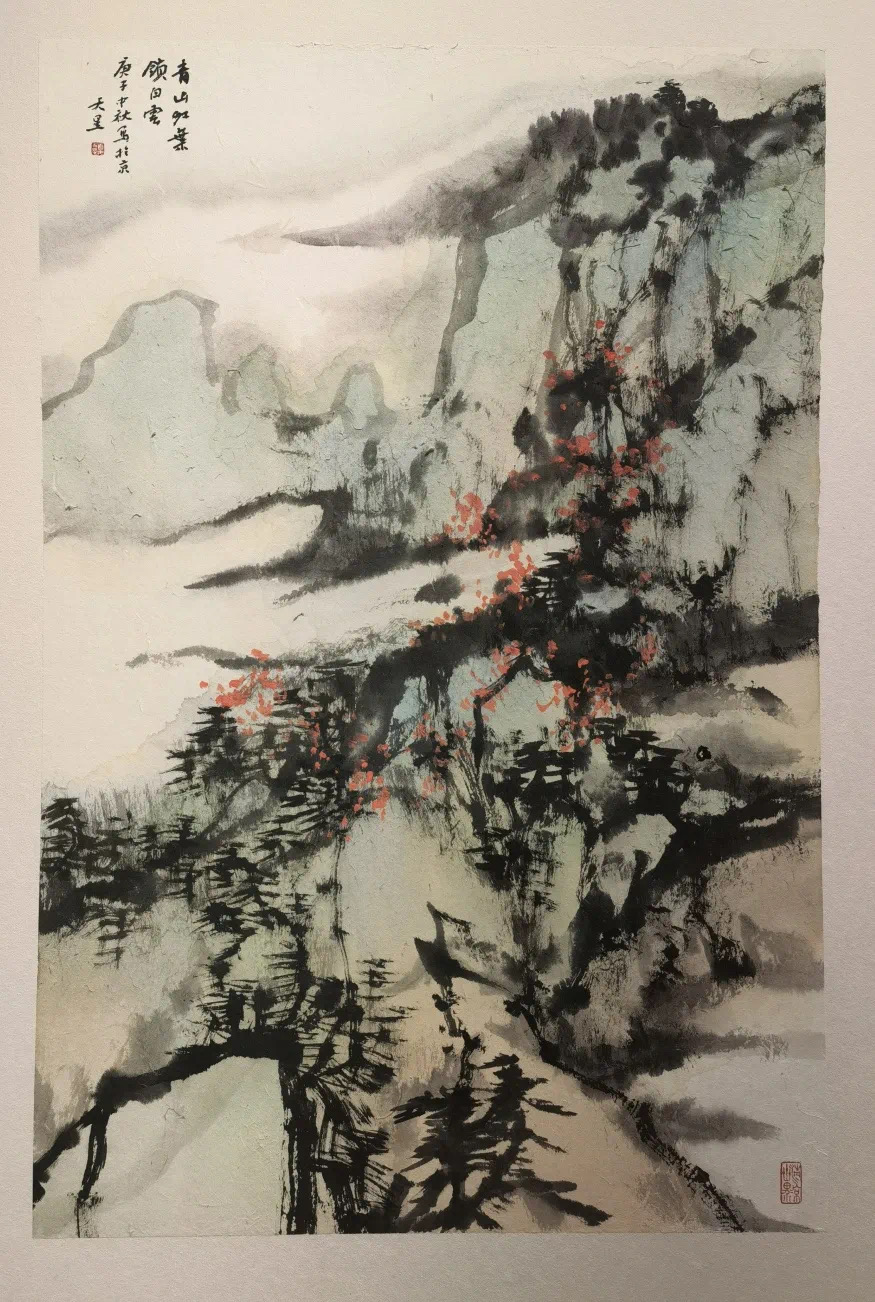 尤为值得一提的是,夏天星的山水画非常注重诗意的呈现,不仅经常以前人诗名为题进行创作,且在画面的造型、构图、布局上,注重营造诗的意境,线条上追求书法用笔,达到“书画合一”的境界。“中国绘画自唐以来,诗意之美、书法之美一直是中国画的整体组成部分,强调诗中有画,画中有诗,诗、书、画同构画境。这是我对于传统文化的继承和坚守,也是本次展览主题‘丹青诗意翰墨文心’的内涵所在。”夏天星说道。