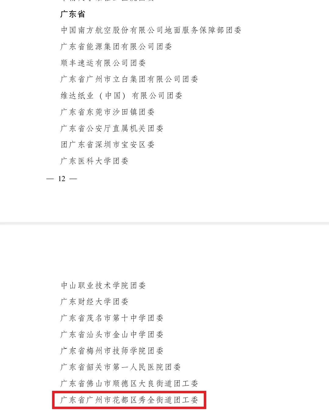 近日,共青团中央下发《共青团中央关于表彰全国五四红旗团委 (团支部)、全国优秀共青团员、 全国优秀共青团干部的决定》。 其中,广东省广州市花都区秀全街道团工委被共青团中央授予2020年度 “全国五四红旗团工委”称号。