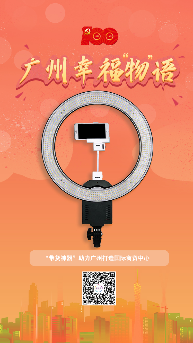 一盏典型的直播灯在一人高左右,底座类似三脚架设计,起着稳定支撑作用。由三脚架伸出的支架上,配有手机夹、话筒夹等多功能配件。大部分直播灯重量较轻,方便携带,更重要的是,其稳定柔和的光源不但能够营造氛围,为主播美颜,还能为带货的产品实现更高的色彩还原度。这些特点恰好适应了当下移动、快节奏的直播需求,于是手机屏幕的背后,圆环形的直播灯无处不在,成为必不可少的“带货神器”之一。
