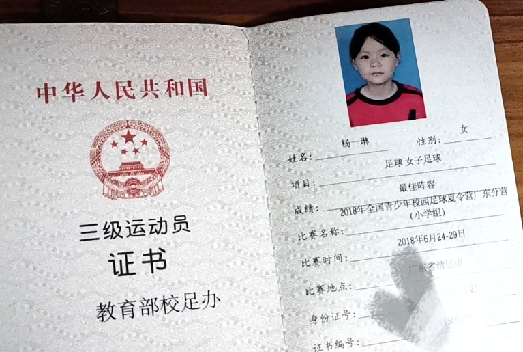 杨一琳,黄埔区唯一一位获得 2018年、2019 年全国青少年校园足球夏令营总营资格的女足队员。