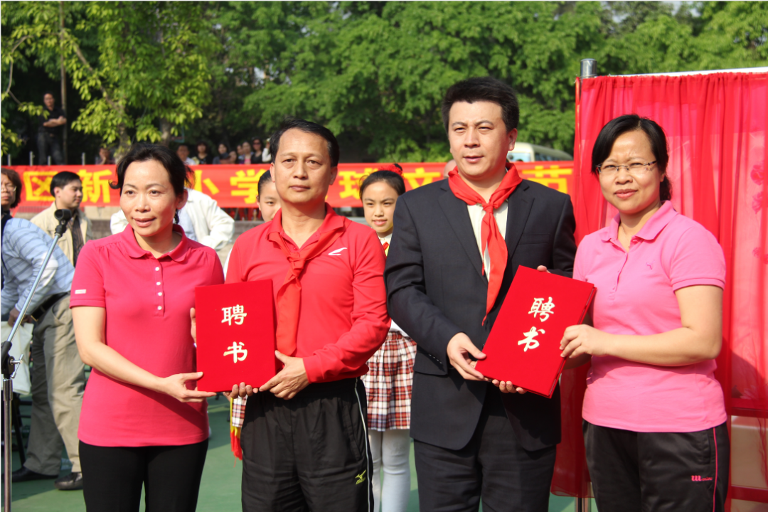 首届足球文化节开幕式,足球名宿古广明先生被聘为学校荣誉校长,足球报资深记者王伟及古广明足球俱乐部古广坚先生成为学校校外辅导员。新小校园足球的种子由此播撒……