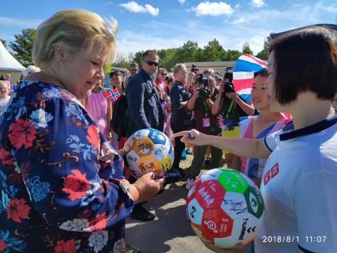 孩子们激动不已,作为回礼,小球员们向挪威首相赠送球队签名足球,向市长赠送了名誉校长刘法禄院长的国画。画面定格在这一幕,同样灿烂的笑容传递着这样一个共同的心愿——“足球传递友谊,愿中挪友谊永远!”