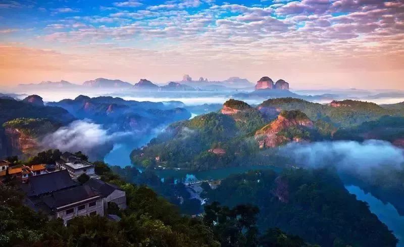 丹霞山内群峰如林、别具一格。在特定的时间和天气,能看到它云雾缥缈的景象,仿佛置身仙境,梦幻又大气。还可以在翔龙湖游水上丹霞,周围群山高崖与湖水,组合为丹山碧水天然画卷。