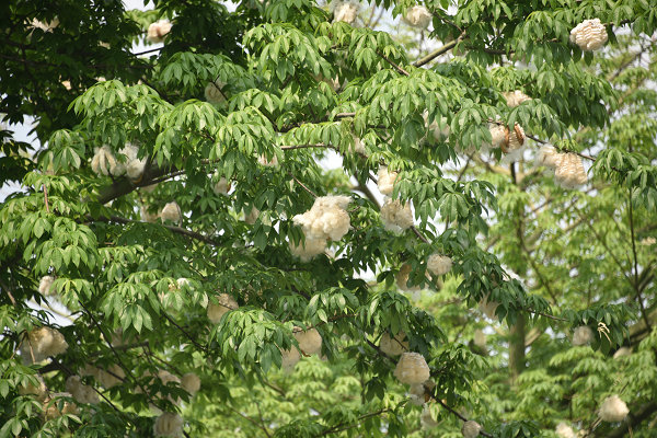 双塔路,异木棉花开之后成一个个棉球,随风飘絮。