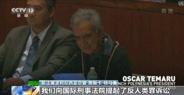 前法属波利尼西亚总督 奥斯卡·特马鲁:我们向国际刑事法院提起了反人类罪诉讼,诉讼的目的是希望从1966年核试验开始以来,所有仍然在世的法国总统站出来(道歉)。