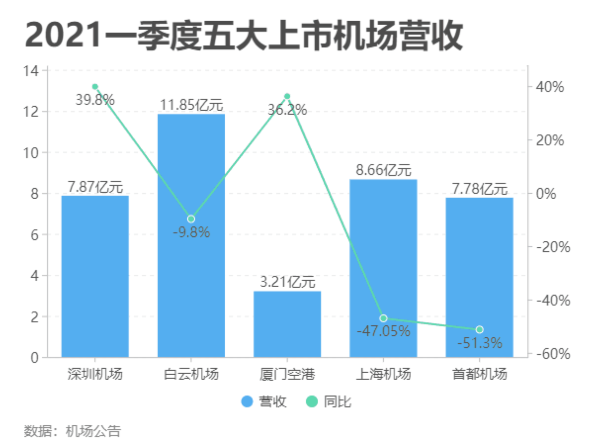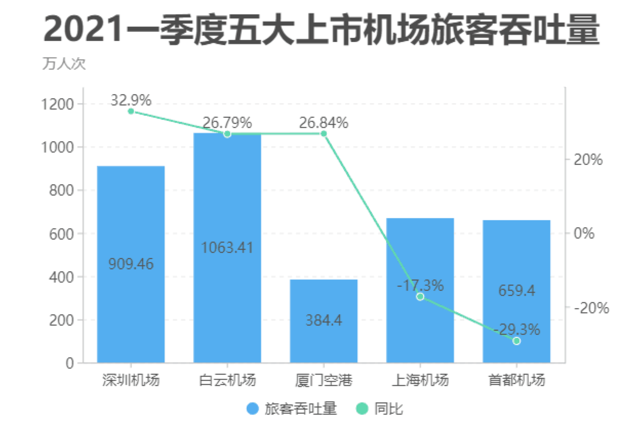 (上图为一季度五大上市机场主要经营指标情况,来源:民航资源网)