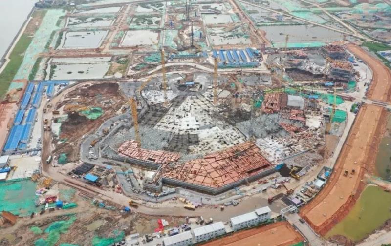 据项目负责人介绍,IFF项目酒店主楼区域已正式突破正负零,局部施工至二层;会议中心局部区域也已出正负零,部分区域正在进行基础筏板施工,项目进展顺利。