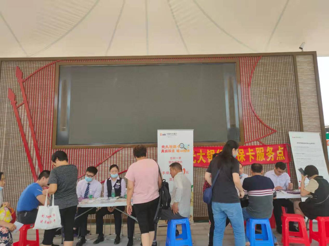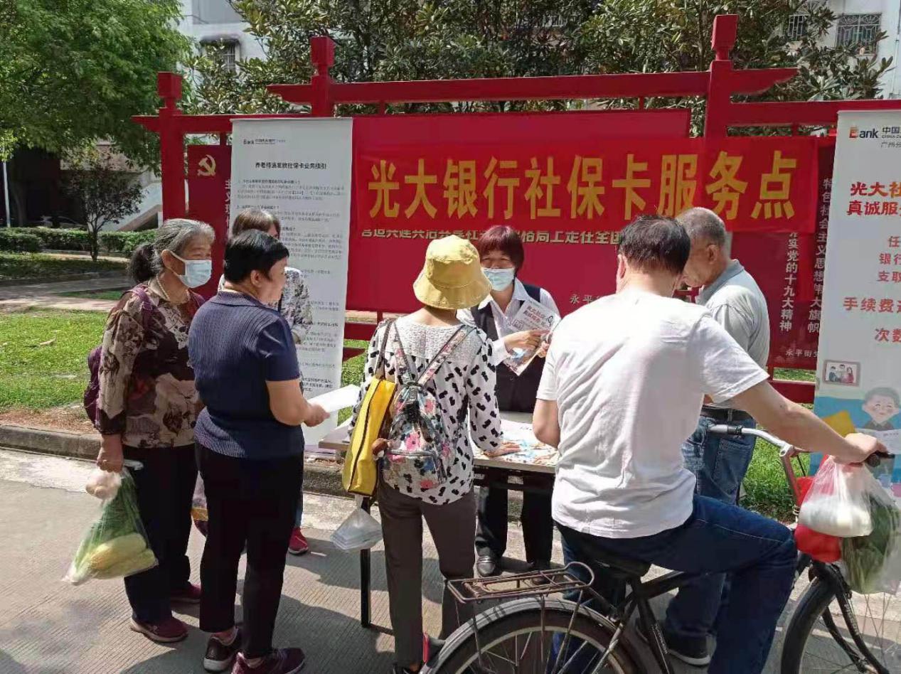 据了解,为全面推广退休人员使用社保卡领取养老保险待遇,使广大退休人员进一步体验更加高效、便捷、全面的养老保险服务,永平街劳动和社会保障服务中心主动联系光大银行,于3月份至4月份在新兴白云花园小区、永泰铭润智慧广场和东平文化广场共设三个便民办事点,为永平街2456名退休人员提供社保卡金融账户激活服务。