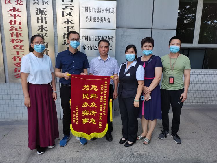 “非常感谢街道能组织设立便民点,方便我们在家门口就能办理社保业务,这是真正为群众办实事。”5月10日下午,广州市白云区永平街4名退休同志和光大银行白云支行人员,将一面写着“急群众所急 为民办实事”的锦旗送到了永平街道办事处。