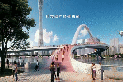 它以“琴鸣绢舞、岭南花舟”为概念——桥的平面提取了粤曲水袖的形态特征,桥拱融入了岭南古琴的造型元素,桥面景观以岭南花舟为主题,共同打造极具岭南特色的花城的新花桥。