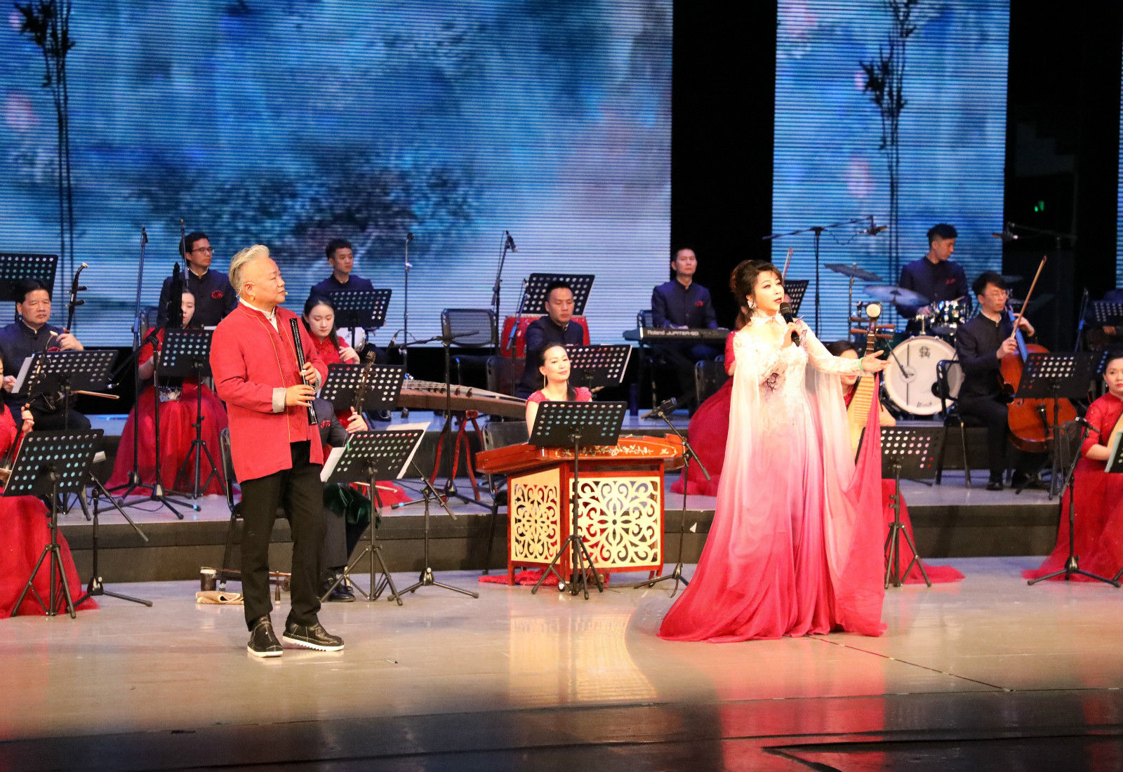 5月12日晚,《红色中国·粤韵飞扬》广东音乐精品音乐会首次来到延安大剧院。由国乐大师方锦龙老师、著名粤曲平喉演唱家梁玉嵘、国家级非物质文化遗产广东音乐传承人何克宁、市级传承人陈芳毅、著名粤语流行歌手陈少雄携手广东音乐曲艺团的优秀演奏家们,为现场观众倾情献上了一场充满地道的广府文化和民族音乐特色的视听盛宴。