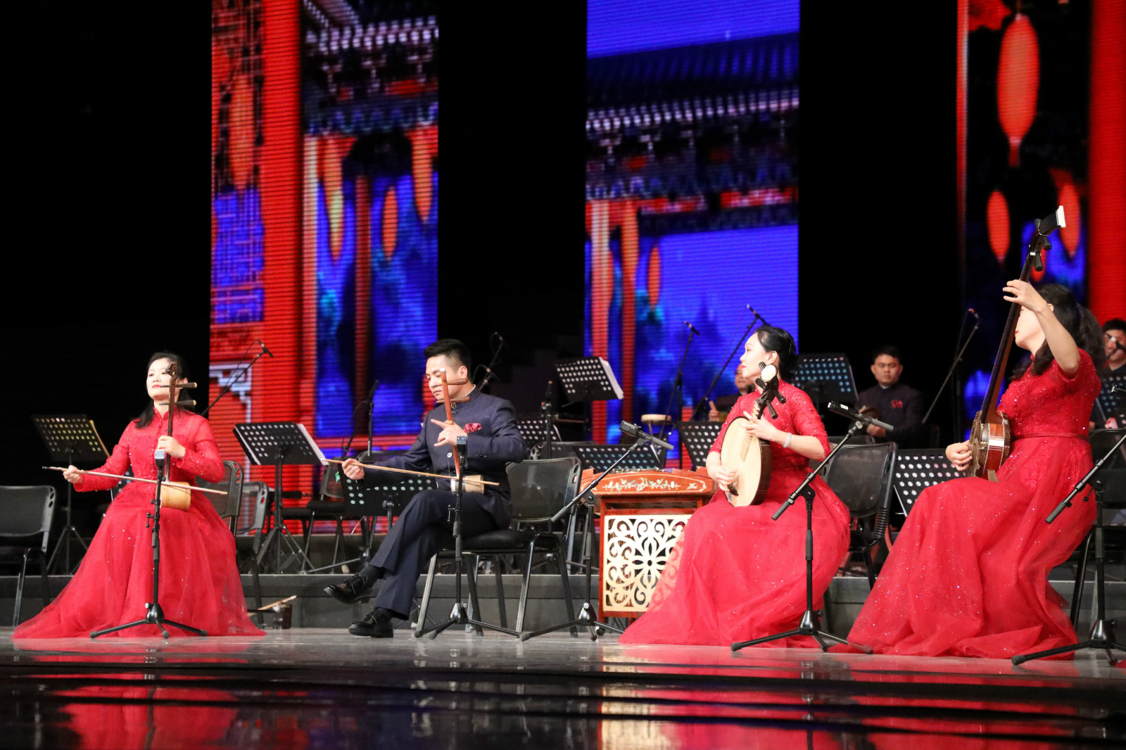 此外,国家级非物质文化遗产广东音乐高胡演奏家何克宁,广东音乐市级传承人喉管演奏家陈芳毅,高胡演奏家潘千芊,扬琴、木琴演奏家黄丽萍以及青年高胡演奏家麦毅等一众优秀青年艺术家运用广东音乐独有的高胡、喉管等传统特色乐器及西洋乐器,多角度展示蕴藏于旋律中的岭南人文风貌,向观众呈现广东音乐的魅力。