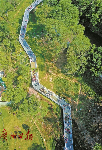 市民游客在越秀区花果山的云道徒步。统筹:梁倩薇、王菁