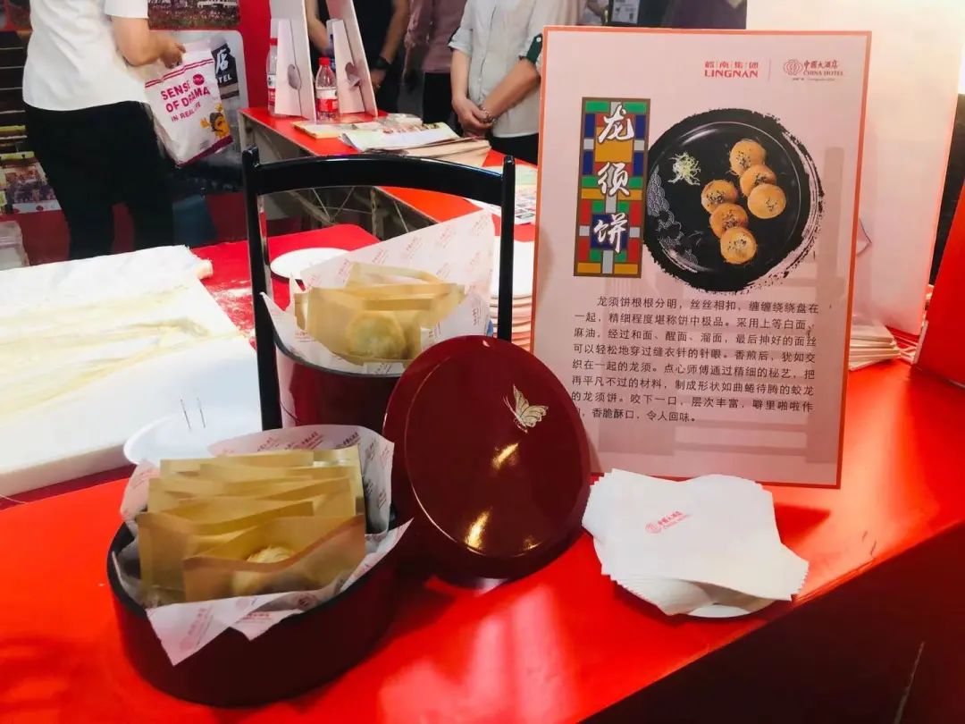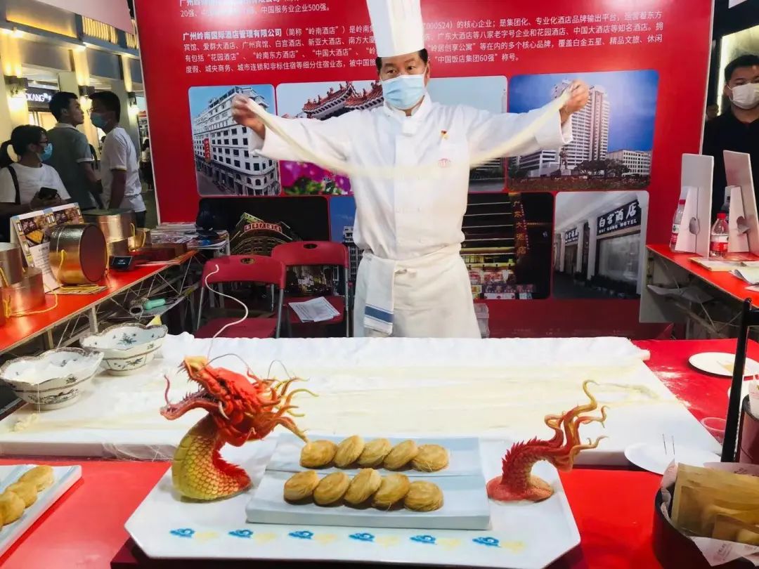 岭南集团旗下的中国大酒店的厨艺大师等展示龙须饼制作技艺