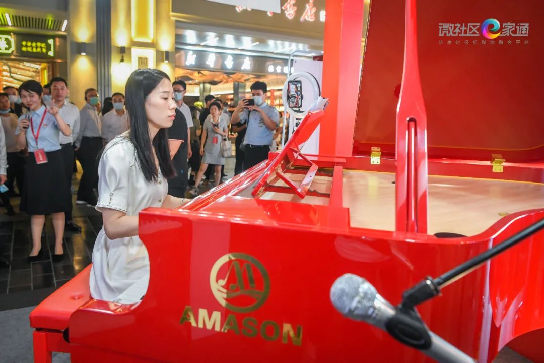 广东老字号珠江钢琴在千年古道上设置了现场演奏厅与一旁的花时花季时尚鲜花店构成了全新的“网红”打卡点。