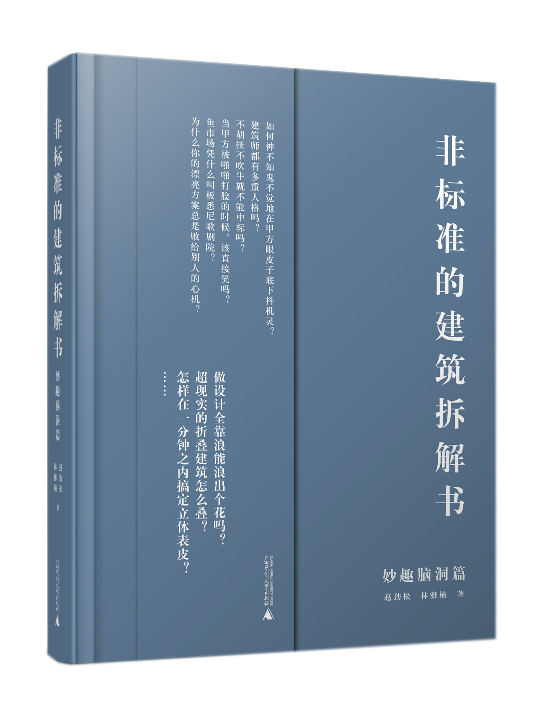 赵劲松,男。籍贯山西太原。1968年生人。天津大学建筑学院建筑学博士,天津大学建筑学院教授,博士生导师。主要著作:《非标准建筑笔记》等。林雅楠,女,籍贯山东烟台,1985年生人。天津大学建筑学院建筑设计及其理论专业硕士,天津大学建筑设计研究院建筑师。主要著作:《非标准体验空间》等。