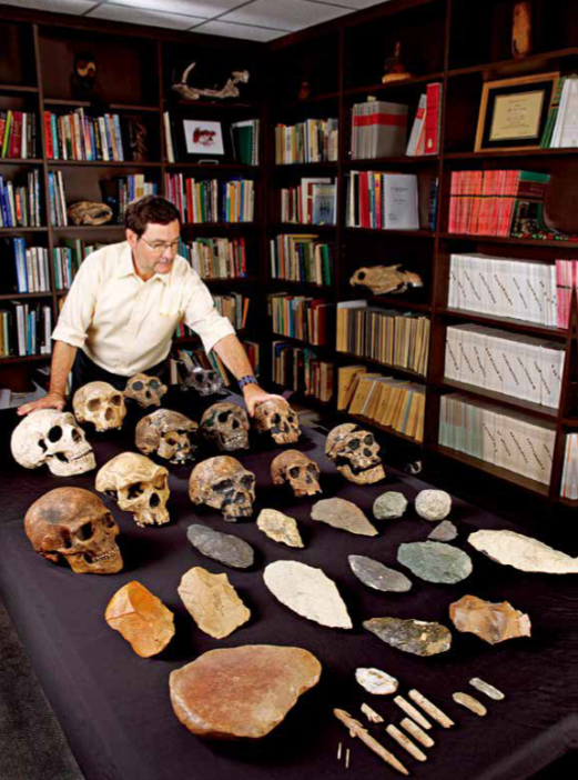各类骨骼化石和史前工具充分展示出人类起源的复杂性。