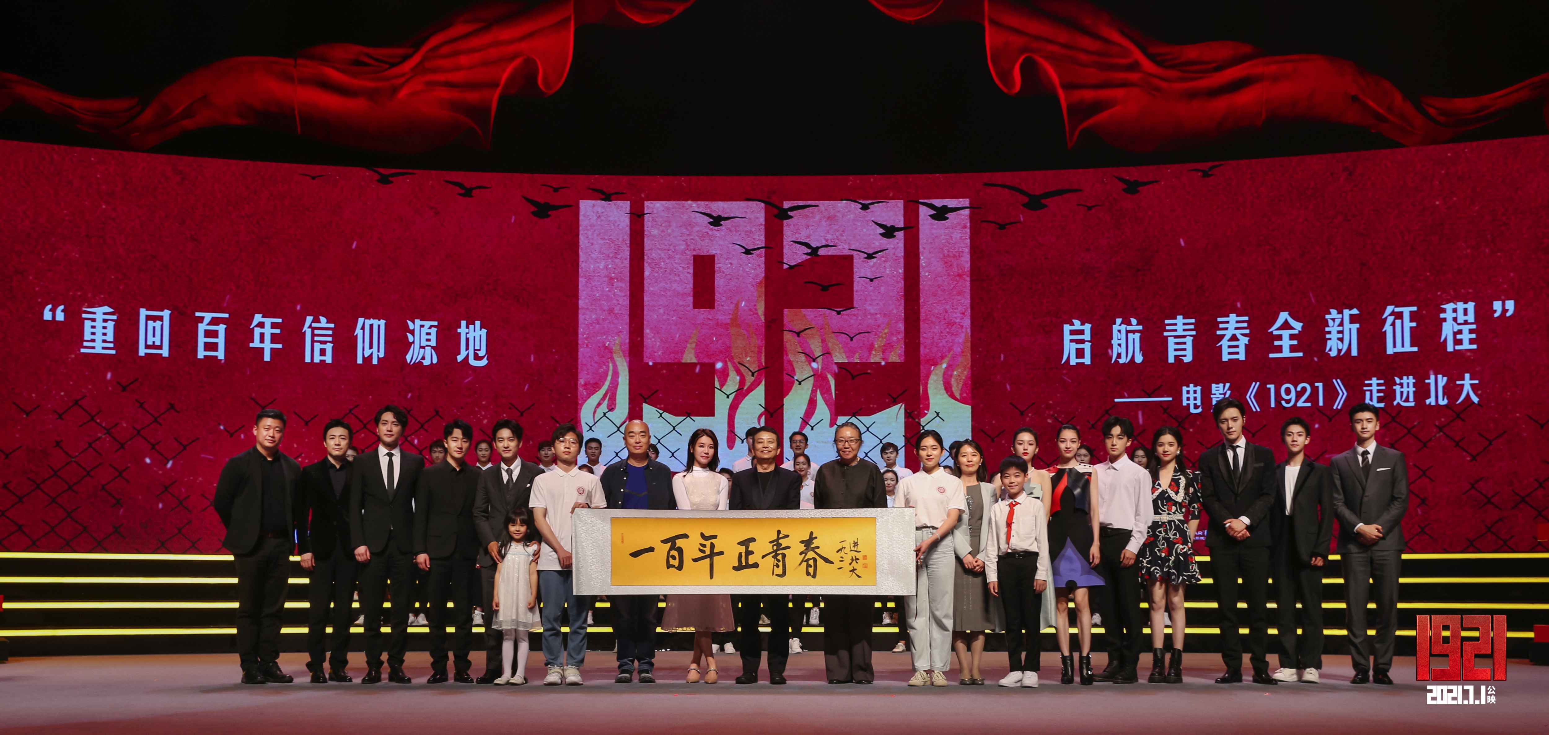 将于7月1日上映的电影《1921》,昨天在北京大学百周年纪念讲堂举办杀青后的首场发布会。电影主创团队走进北京大学,与北大师生同溯建党初心。“一百年,正青春”,活动现场气氛热烈。影片监制、导演黄建新,联合导演郑大圣,制片人任宁,演员黄轩、袁文康、王仁君、祖峰、刘家祎、张超、张云龙、郭子凡、韩昊霖、萱萱、张婧仪、钟楚曦、周也集结亮相。
