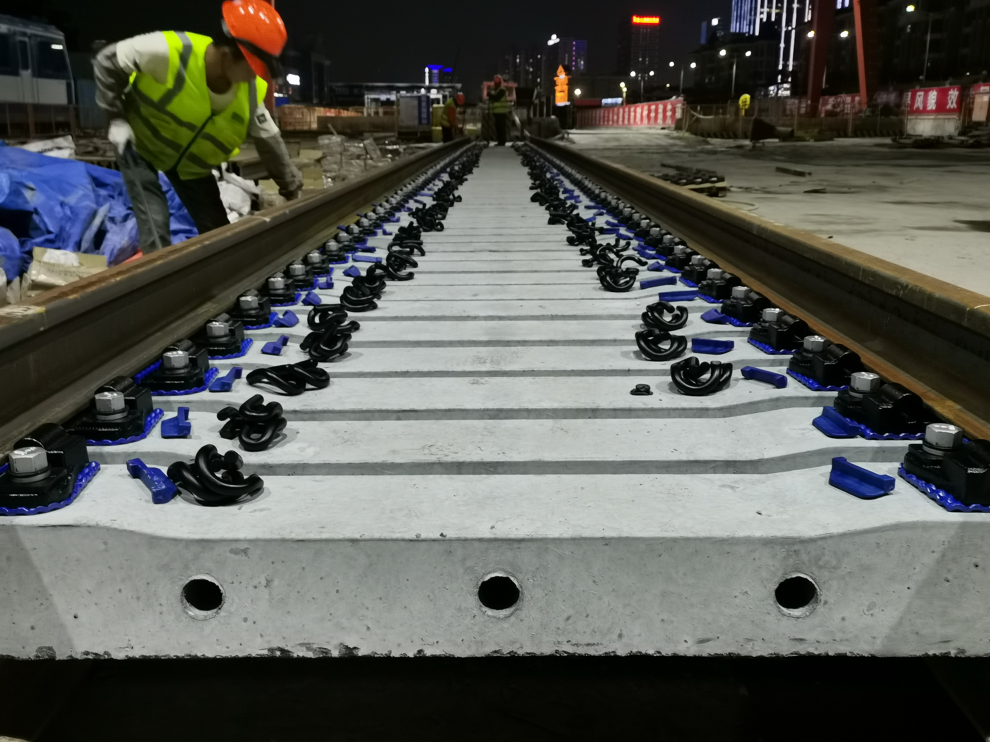 七号线西延顺德段轨道工程包含一般整体道床、中等减振道床、高等减振道床和特殊减振道床四种道床类型。自2020年12月5日开铺以来,在面对工期紧、任务重等困难,施工单位中铁一局积极调整施工方案,倒排施工计划,整合施工资源,全力推动工程建设。“我们一共设置了5个铺轨基地,组织了8个作业队伍、500余名管理及施工人员参与作业,投入了19台铺轨机、12辆平板车、6台轨道车、4台吊车及龙门吊、混凝土搅拌罐车等多种设备,为双线短轨贯通奠定了坚实基础”,中铁一局广州地铁七号线西延顺德段轨道工程项目负责人何青桦告诉记者。